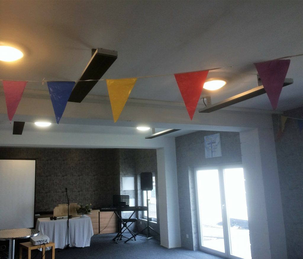Il signor Bayense di Kerkrade, nei Paesi Bassi, stava cercando una soluzione rapida per il riscaldamento della sua sala riunioni evangelica. Il riscaldamento a convezione non era un’opzione qui perché questo spazio è scarsamente isolato e contiene molte sezioni di vetro. Inoltre, c’è il rischio di muffa.
