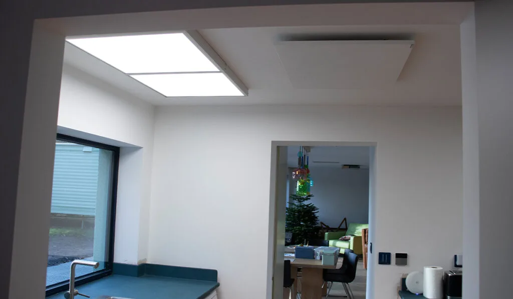Simon spiega anche come i pannelli a infrarossi forniscano un calore molto confortevole e, di conseguenza, sia in grado di impostare i termostati su una temperatura inferiore di uno o due gradi rispetto a prima, con la caldaia a gas per il riscaldamento centralizzato.