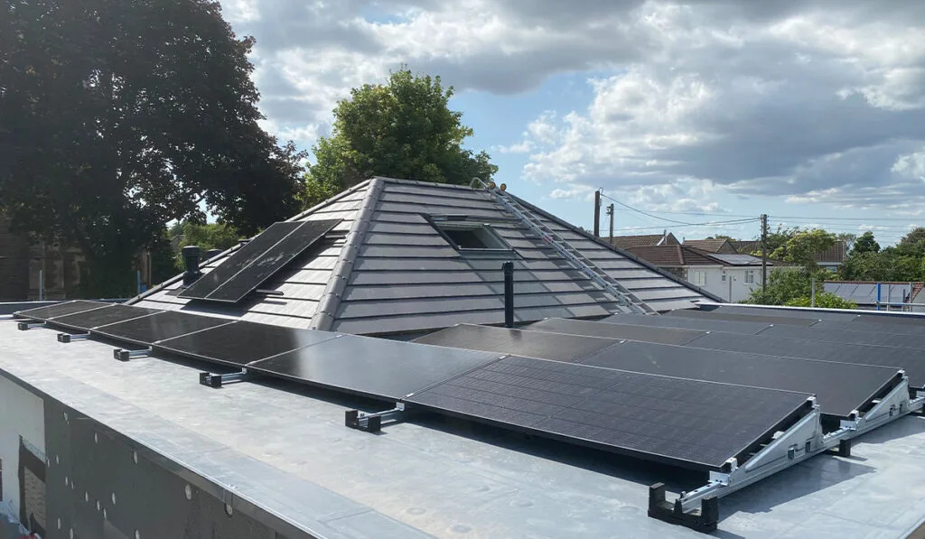 Quando si è valutata la possibilità di soluzioni di riscaldamento, un sistema basato su pompa di calore è stato escluso a causa dei costi e degli aspetti pratici associati al suo progetto. Simon ha creato una casa molto ben isolata (secondo gli standard EnerPhit) e, per lui, una pompa di calore ad aria avrebbe significato spendere un sacco di soldi per qualcosa che si spera non verrà utilizzato molto. Invece, Simon ha destinato il suo budget all’installazione di riscaldamento a infrarossi e di un sistema completo di pannelli solari e batterie, il tutto a un costo simile a quello di un sistema a pompa di calore.